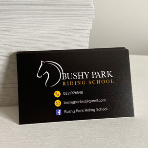 Business cards are sized to 90x55mm standard and printed on professional 350gsm cardstock.