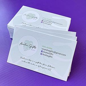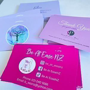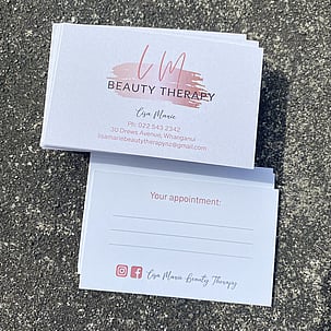Business cards are sized to 90x55mm standard and printed on professional 350gsm cardstock.