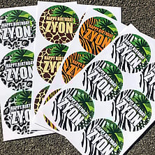 Party favour stickers can complete your look by adding the finishing touch to your decor and favours. Printed on our paper based semi-gloss sticker paper. Send us your existing design ready for print or we can create something specific to your needs.
